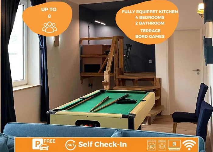 Наряду с такими удобствами, как оснащённая всем необходимым кухня, в Gesamte Stilvolle Unterkunft Mit Terrasse обустроили обеденную зону на открытом воздухе. Gesamte Stilvolle Unterkunft Mit Terrasse разместились совсем недалеко от автобусной станции Hauptbahnhof.